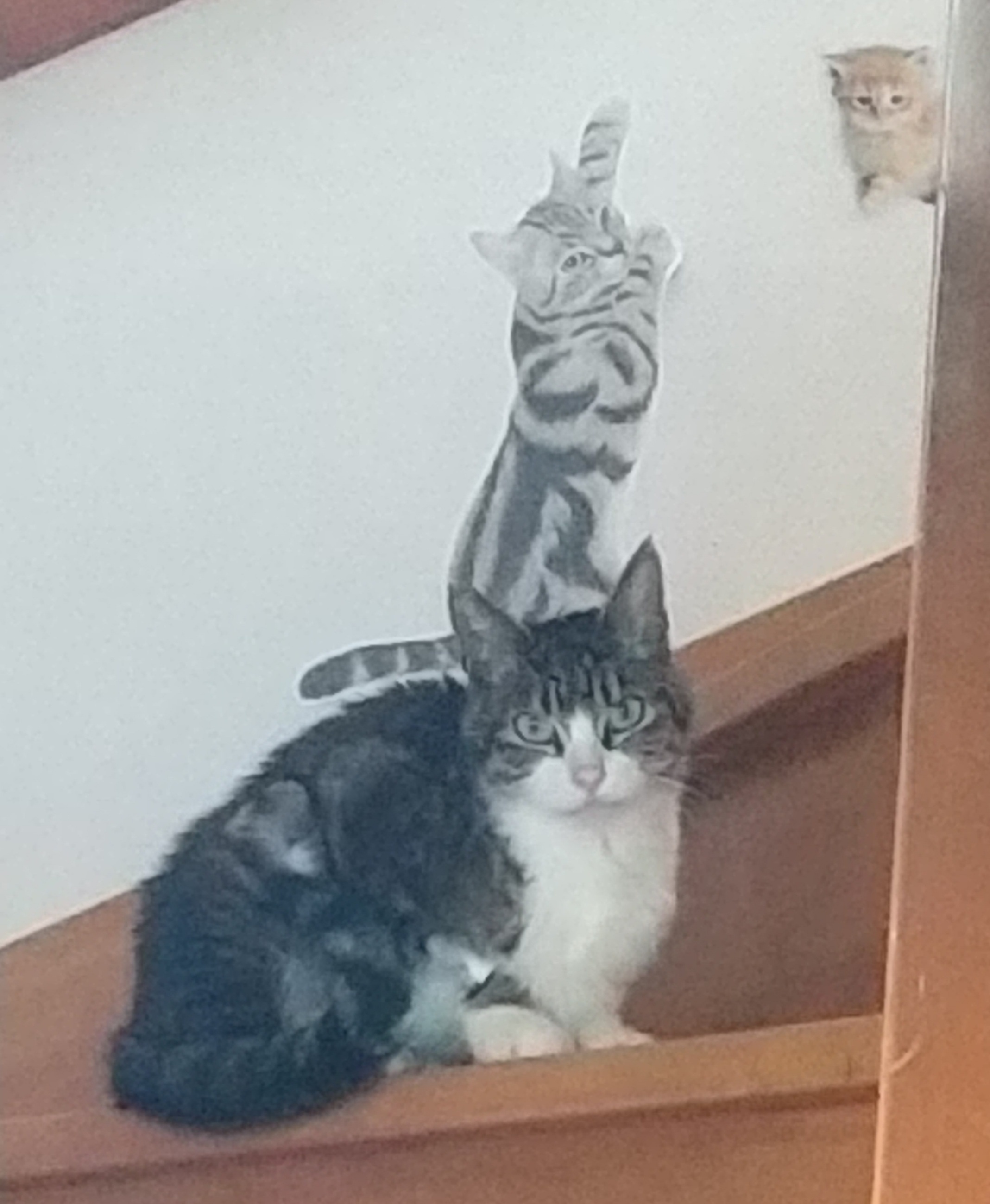 木目を生かした塗装を施し、家具に貼りつければ猫家具になります。