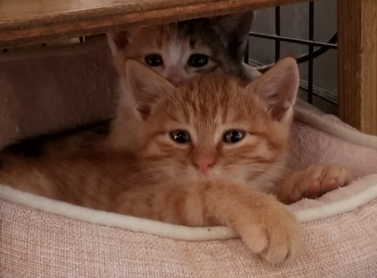 生後2か月のまだ名無し兄妹です。遊び始めてしっかり食べています。