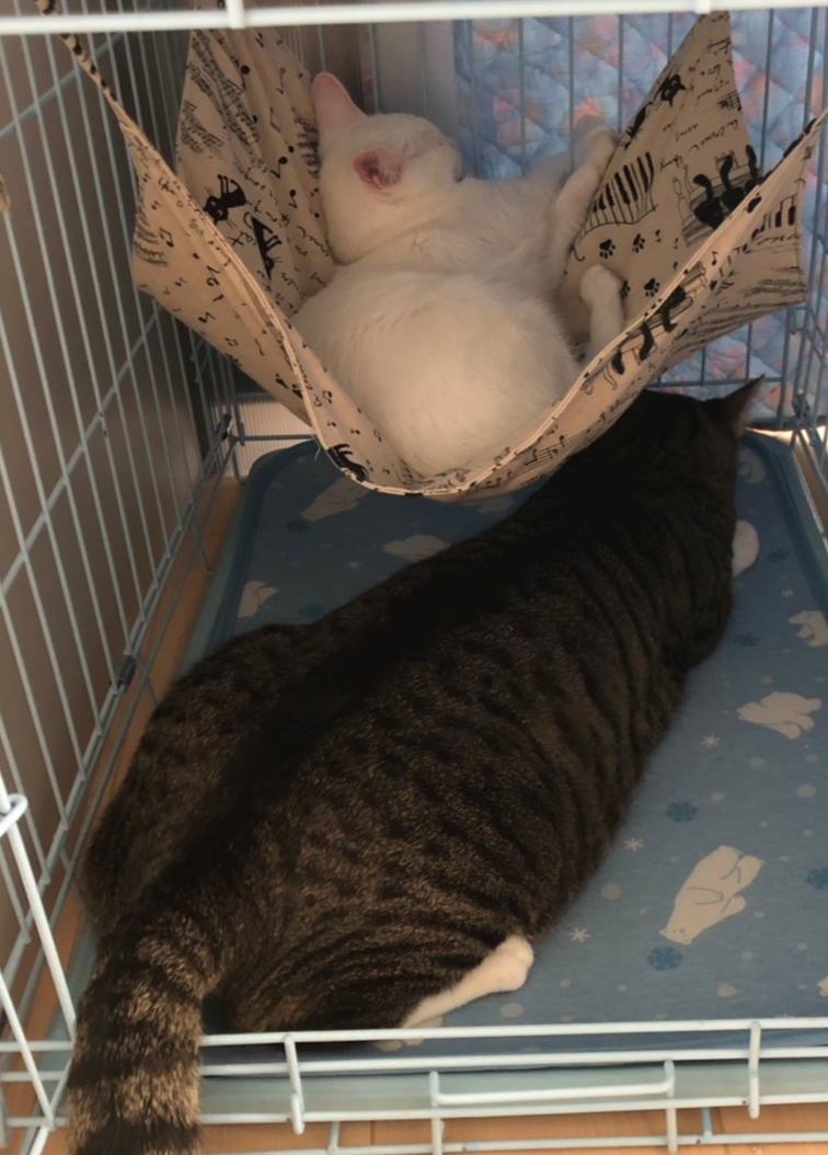 保護猫部屋にオジサンおばさん猫がいて占拠されているので入れません。