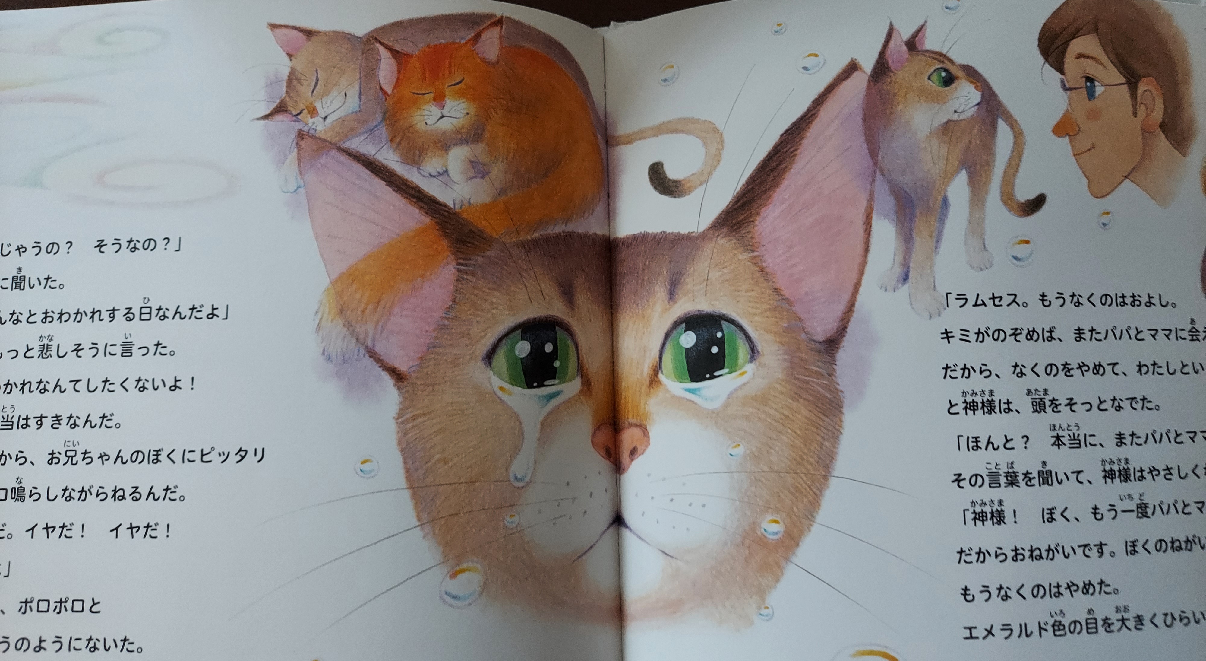 2匹目の女の子が来た時の先住猫としての複雑な気持ち、大好きな家族とのお別れが近づいていることを感じてからのことなど描かれています。